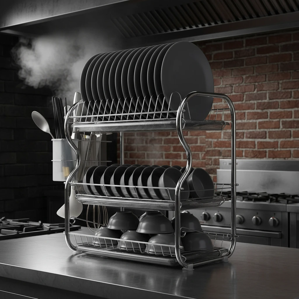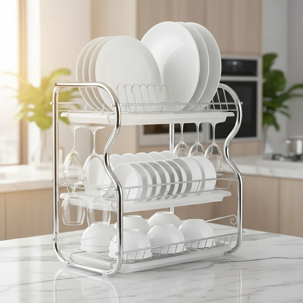 Whether you’re cooking daily meals or hosting guests, this 3-layer dish drainer rack ensures your dishes dry quickly and stay neatly arranged. Perfect for busy households, it helps maintain a hygienic kitchen while maximizing limited space.