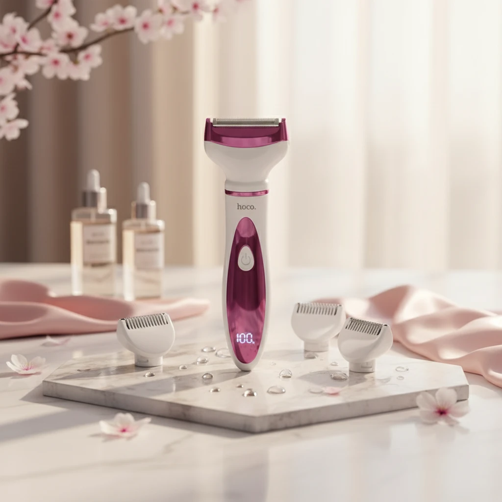 Hoco HP80 4-in-1 Ladies Trimmer & Shaver β Rechargeable Multi-Function Grooming Kit for Women (Body, Face, Eyebrow & Nose)